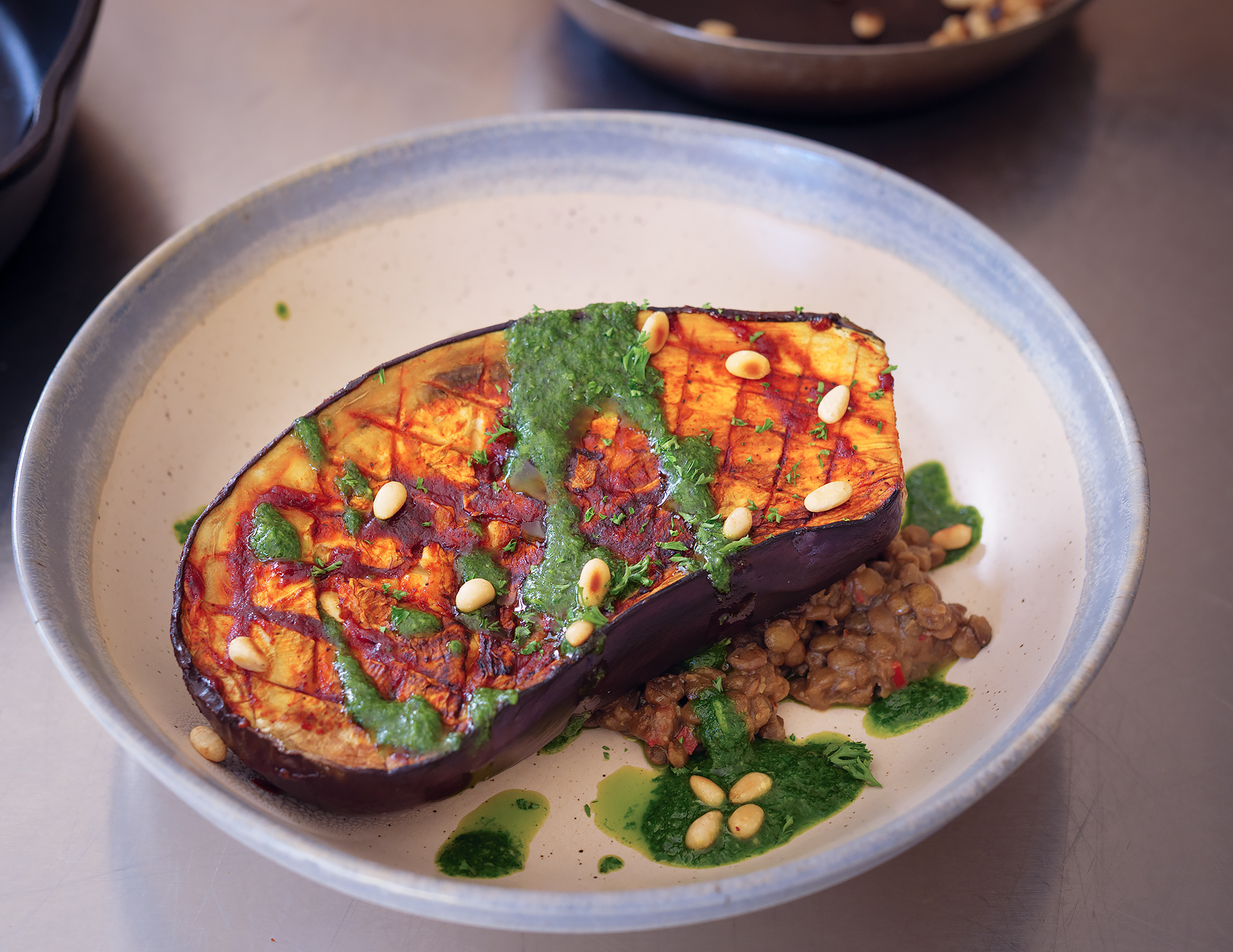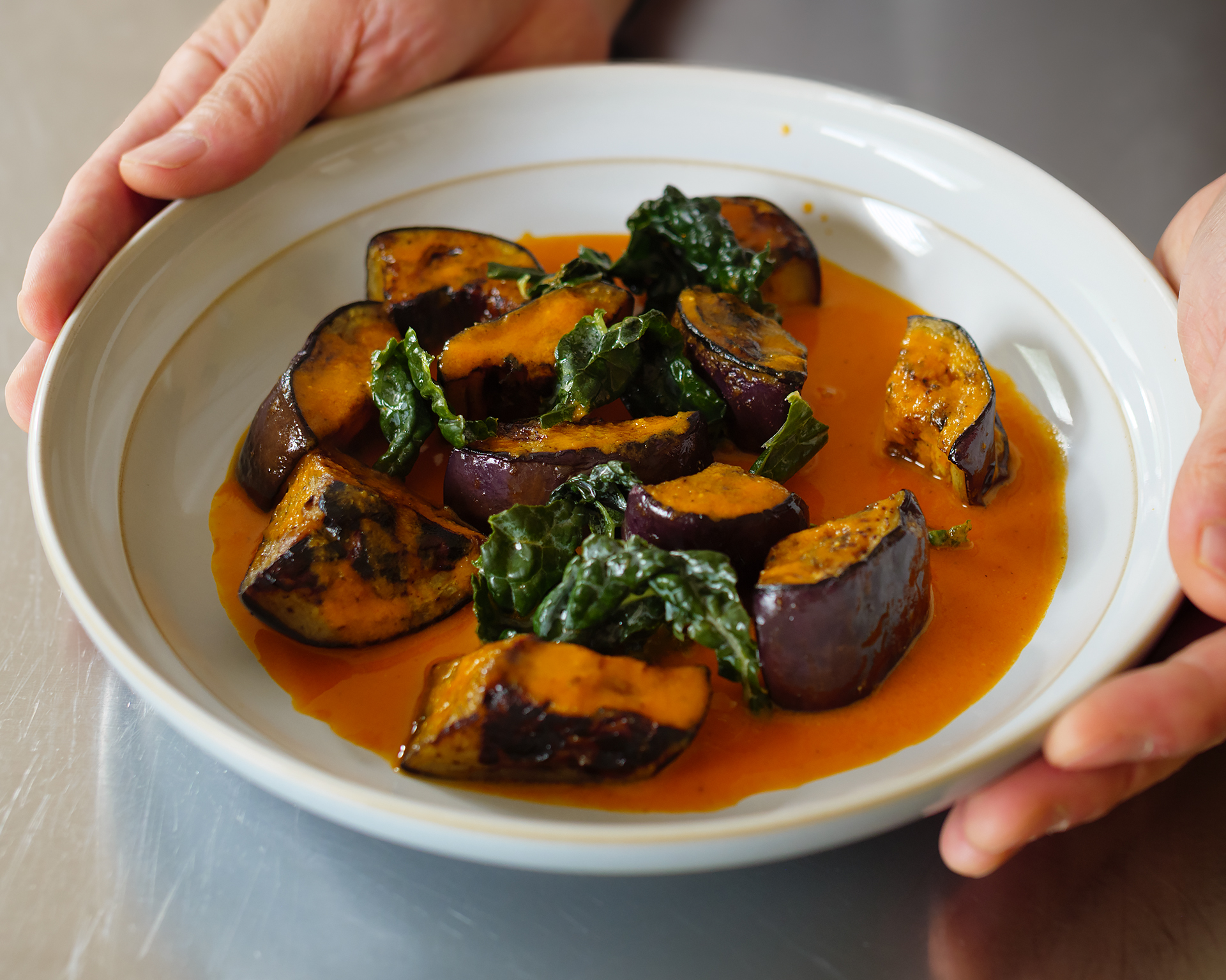 Calm Vegan Cooking | Pan-Grilled Aubergine with Coconut Tomato Purée