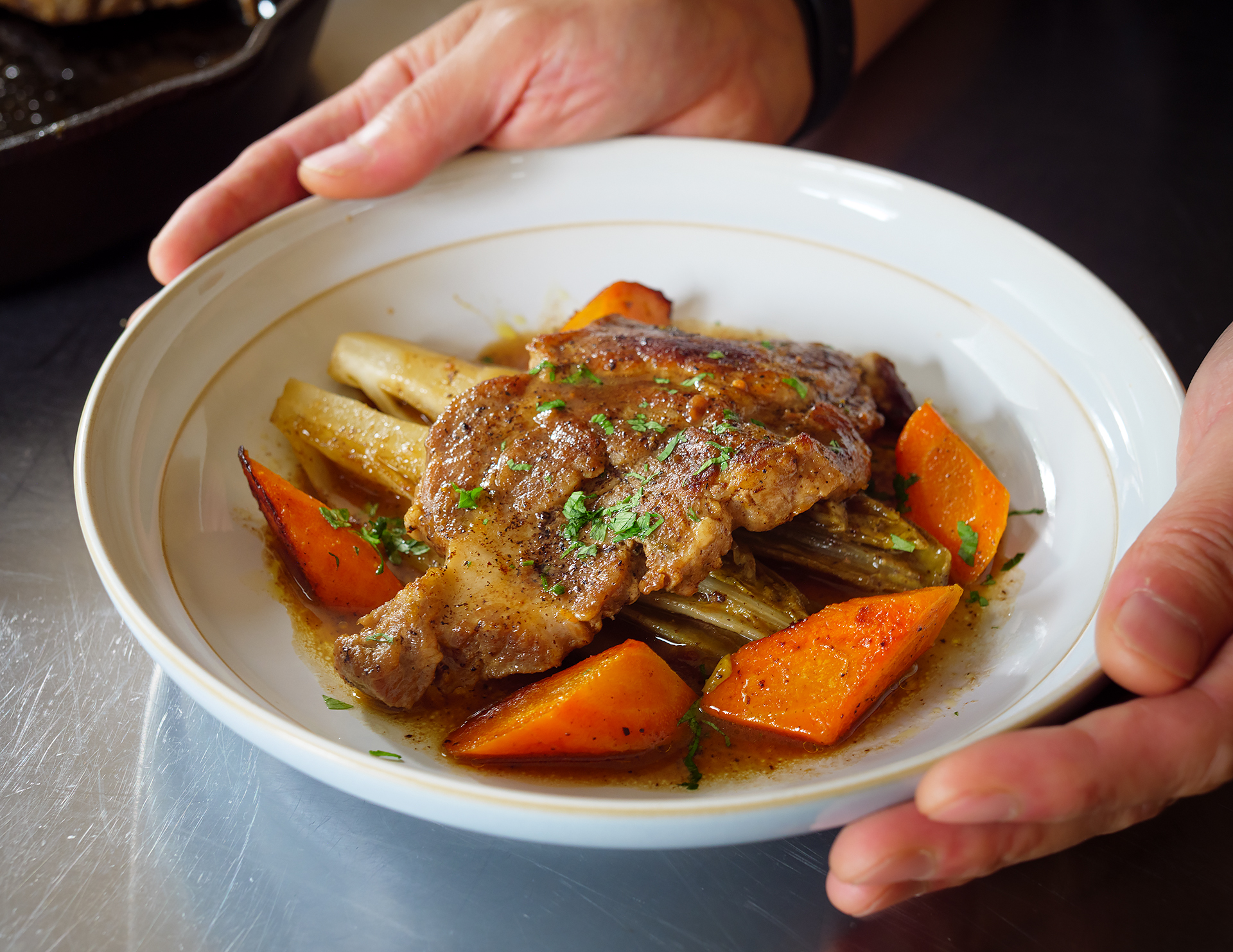 Braised Pork Shoulder with Miso Raspberry Sauce