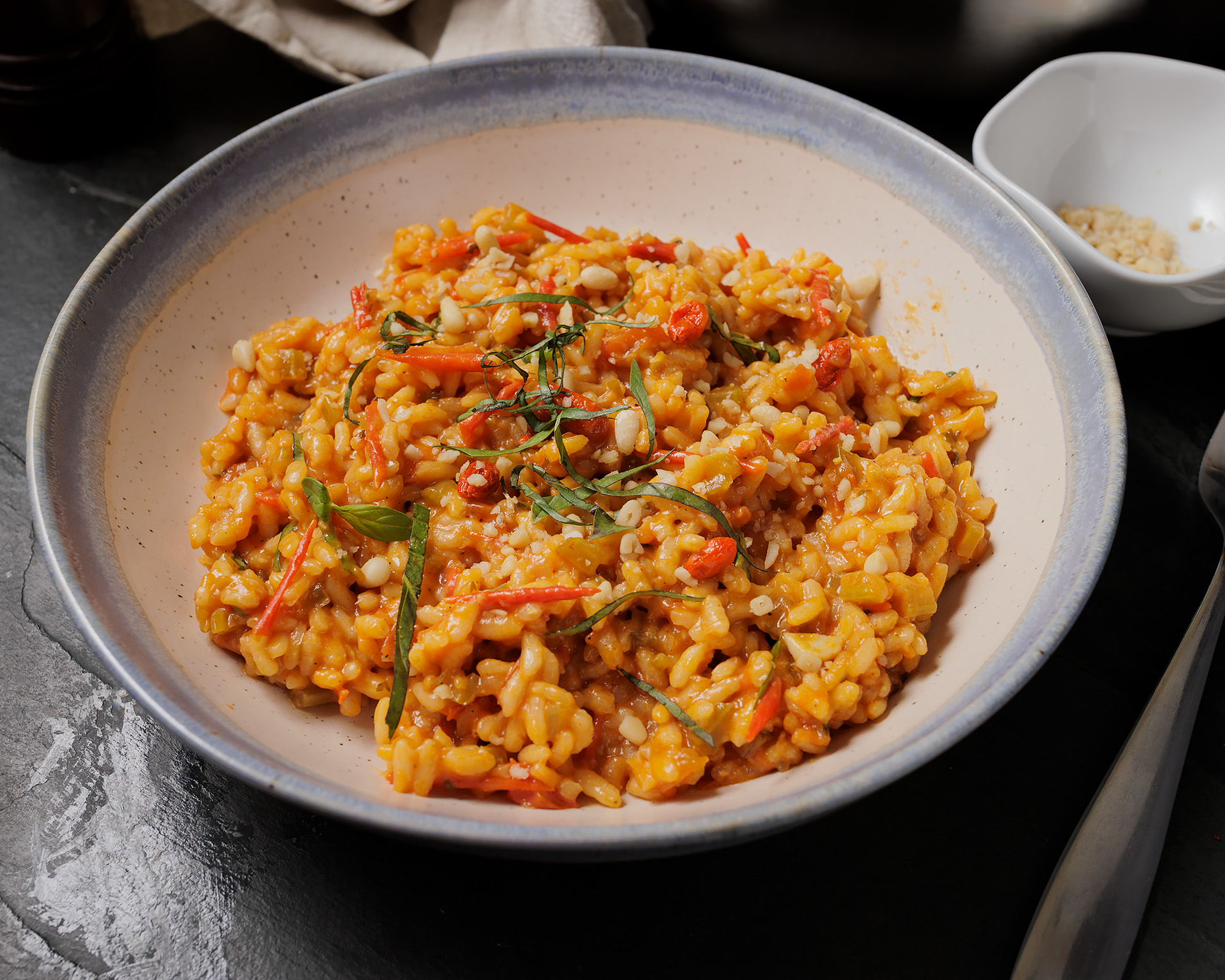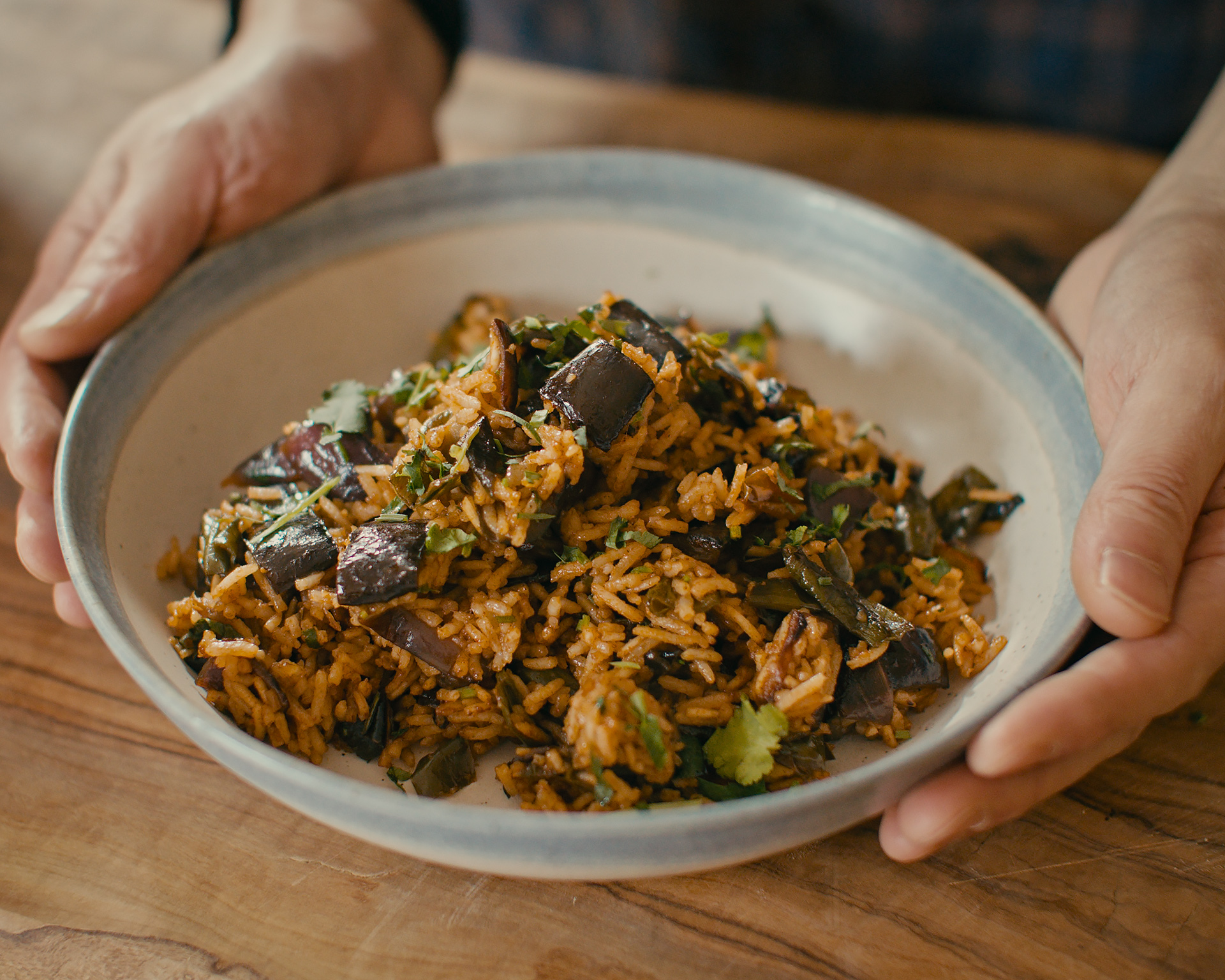 Gochujang Roasted Aubergine and padron pepper rice bowl
