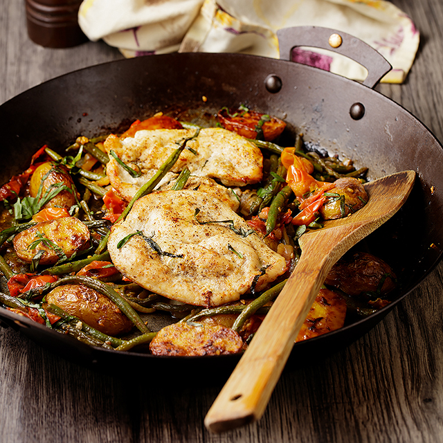 Ingredients (Serves 2): Instructions: 1. Prepare the Potatoes: 2. Season the Chicken: 3. Sear the Chicken: 4. Tomato and Shallot…